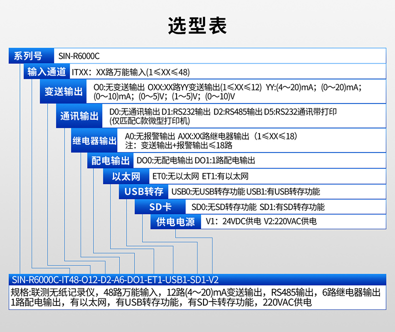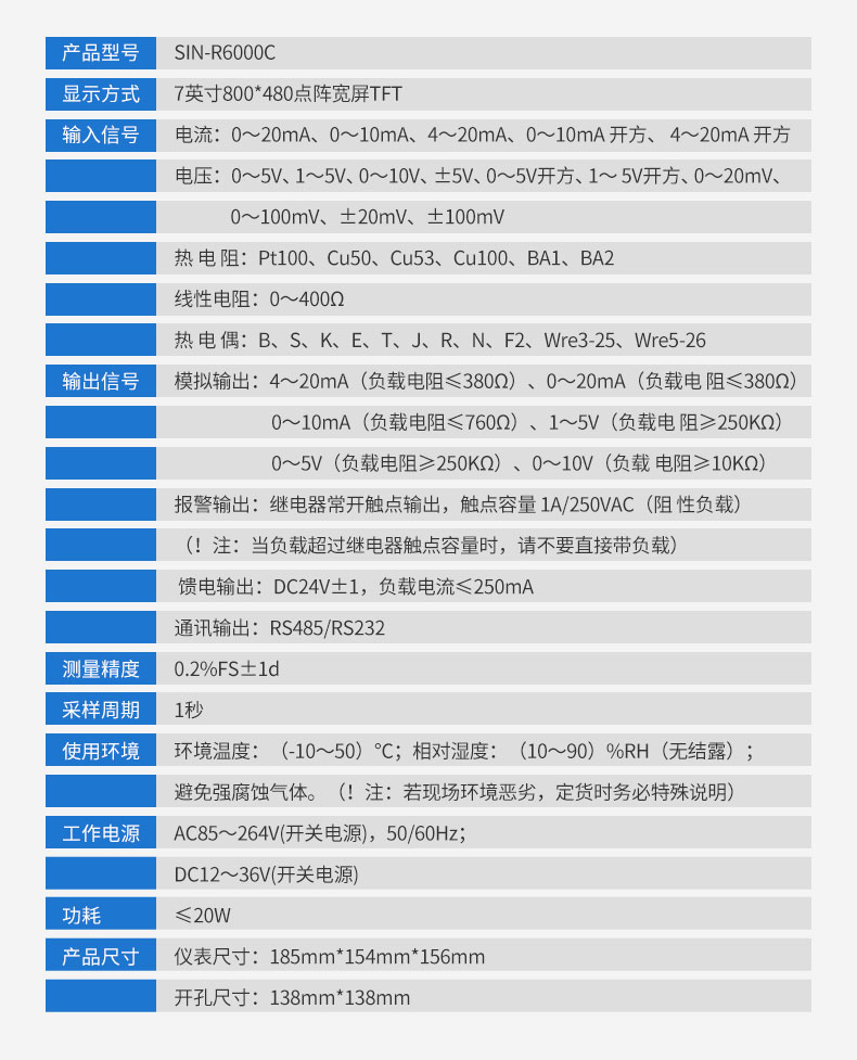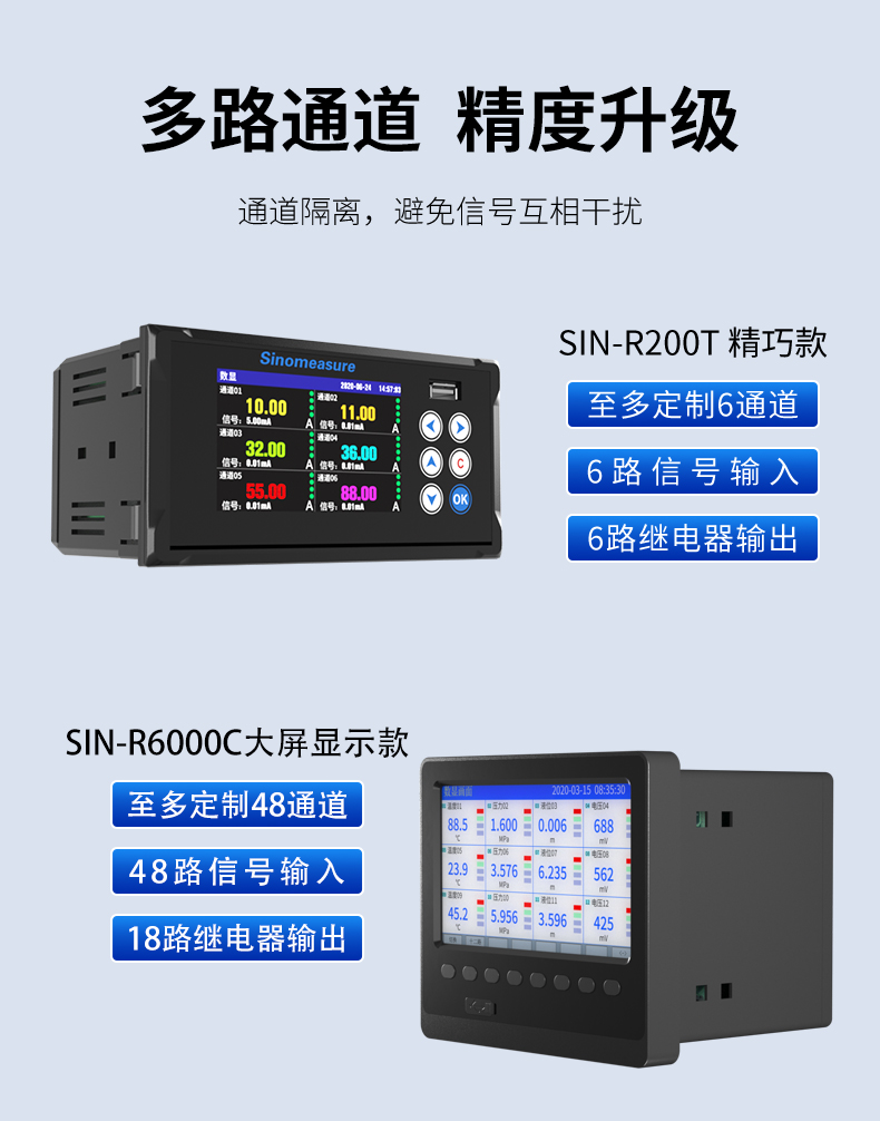 SIN-R6000C系列彩色無(wú)紙記錄儀48路萬(wàn)能輸入,可帶18路報(bào)警輸出,12個(gè)變送輸出,RS232/485通訊接口,以太網(wǎng)接口,微型打印機(jī)接口和USB接口,SD卡插座;可提供傳感器配電;具有強(qiáng)大的顯示功能,實(shí)時(shí)曲線顯示,歷史曲線追憶,棒圖顯示,報(bào)警列表顯示。