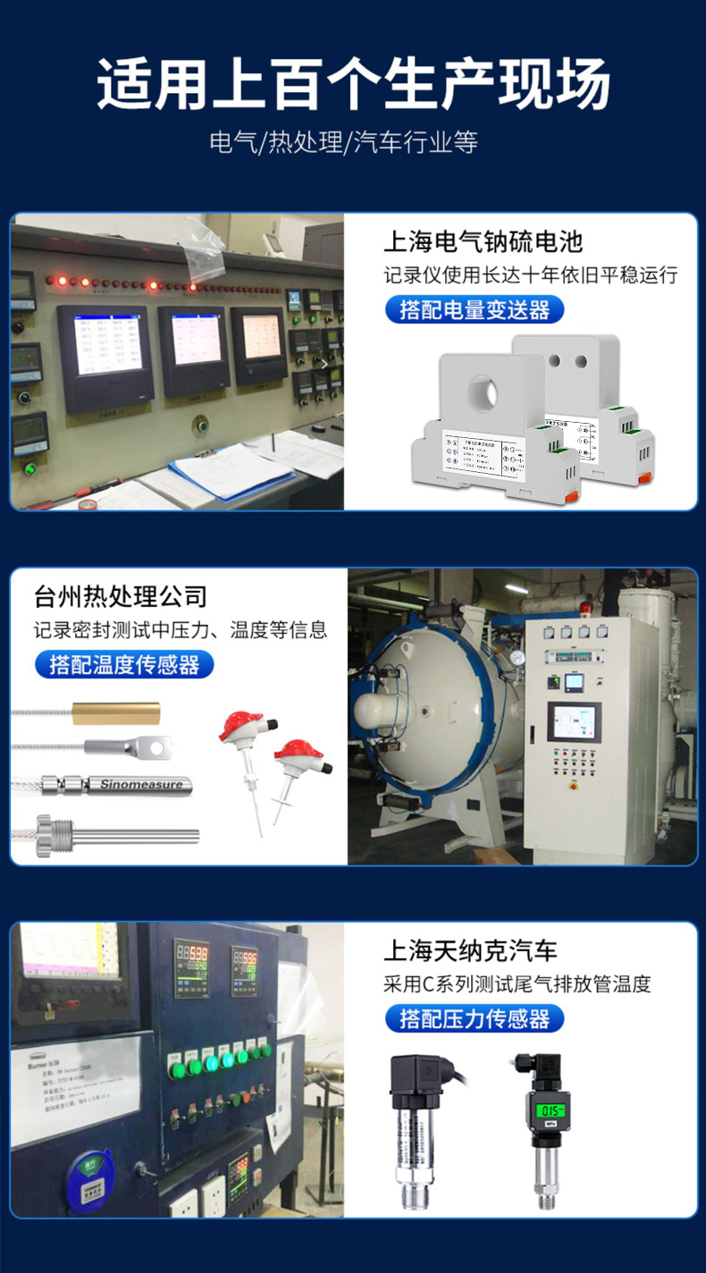 | 應(yīng)用行業(yè) | 聯(lián)測儀表SIN-R200T無紙記錄儀可輸入電流、電壓、熱電偶、熱電阻和頻率等工業(yè)信號。 |